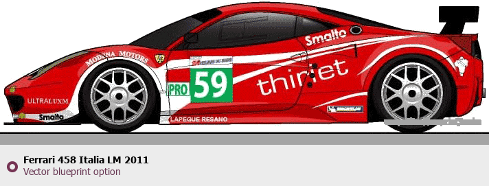 Raster blueprint of the 2011 Ferrari 458 Italia LM Coupe. This free downloadable image can be used for graphic projects, digital design, and 3D modeling. The file provides accurate exterior proportions of the vehicle. Model year: 2011. Body type: Coupe.