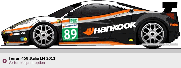 Raster blueprint of the 2011 Ferrari 458 Italia LM Coupe. This free downloadable image can be used for graphic projects, digital design, and 3D modeling. The file provides accurate exterior proportions of the vehicle. Model year: 2011. Body type: Coupe.