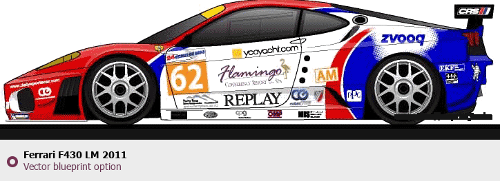 Raster blueprint of the 2011 Ferrari F430 LM Coupe. This free downloadable image can be used for graphic projects, digital design, and 3D modeling. The file provides accurate exterior proportions of the vehicle. Model year: 2011. Body type: Coupe.