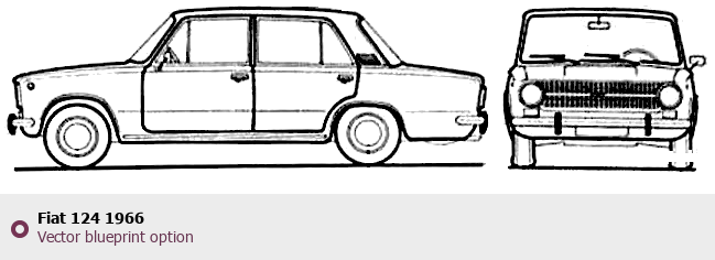 Raster blueprint of the 1966 Fiat 124 Tag. This free downloadable image can be used for graphic projects, digital design, and 3D modeling. The file provides accurate exterior proportions of the vehicle. Model year: 1966. Body type: Tag.