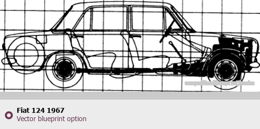 Raster blueprint of the 1967 Fiat 124 Tag. This free downloadable image can be used for graphic projects, digital design, and 3D modeling. The file provides accurate exterior proportions of the vehicle. Model year: 1967. Body type: Tag.