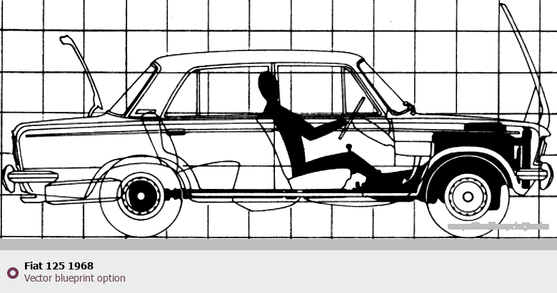 Raster blueprint of the 1968 Fiat 125 Tag. This free downloadable image can be used for graphic projects, digital design, and 3D modeling. The file provides accurate exterior proportions of the vehicle. Model year: 1968. Body type: Tag.