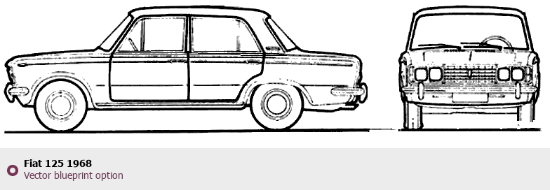 Raster blueprint of the 1968 Fiat 125 Tag. This free downloadable image can be used for graphic projects, digital design, and 3D modeling. The file provides accurate exterior proportions of the vehicle. Model year: 1968. Body type: Tag.