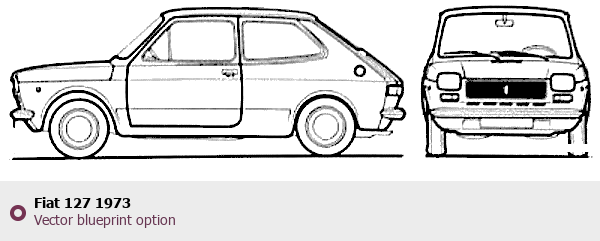 Raster blueprint of the 1973 Fiat 127 Hatchback. This free downloadable image can be used for graphic projects, digital design, and 3D modeling. The file provides accurate exterior proportions of the vehicle. Model year: 1973. Body type: Hatchback.