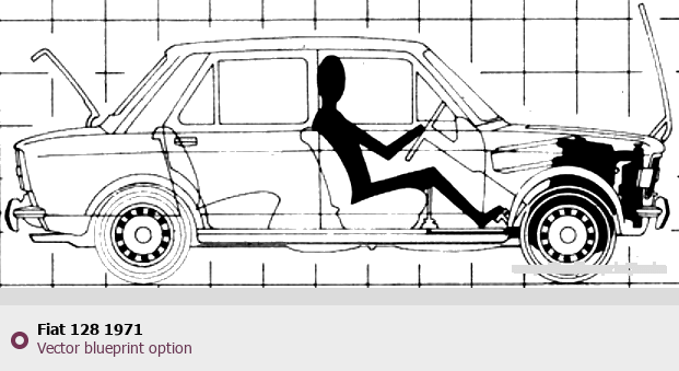 Raster blueprint of the 1971 Fiat 128 Tag. This free downloadable image can be used for graphic projects, digital design, and 3D modeling. The file provides accurate exterior proportions of the vehicle. Model year: 1971. Body type: Tag.