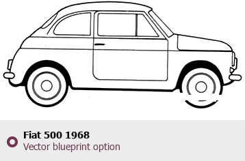 Raster blueprint of the 1968 Fiat 500 Tag. This free downloadable image can be used for graphic projects, digital design, and 3D modeling. The file provides accurate exterior proportions of the vehicle. Model year: 1968. Body type: Tag.