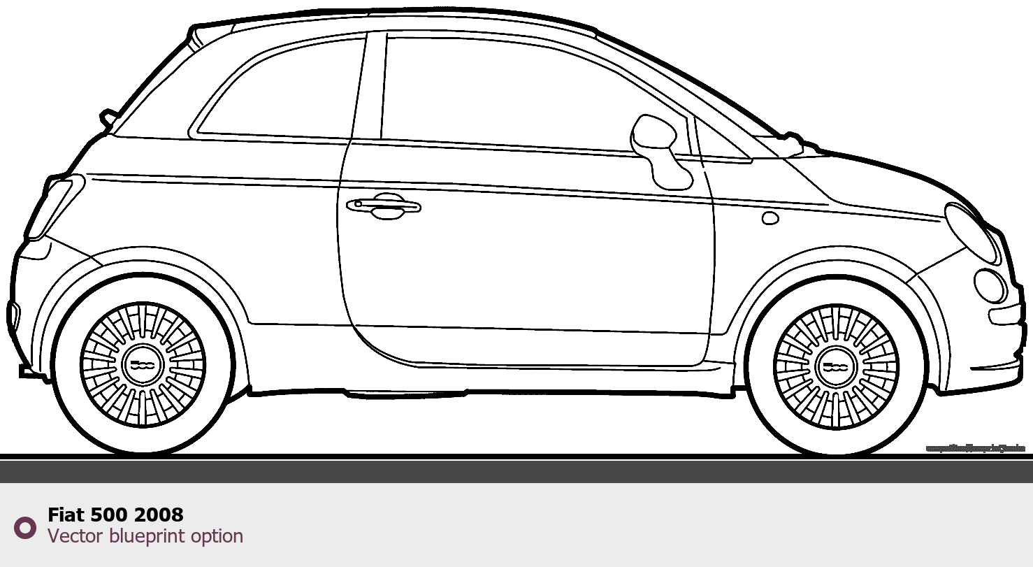 Raster blueprint of the 2008 Fiat 500 Tag. This free downloadable image can be used for graphic projects, digital design, and 3D modeling. The file provides accurate exterior proportions of the vehicle. Model year: 2008. Body type: Tag.