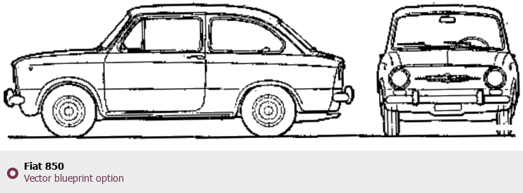 Raster blueprint of the Fiat 850 Tag. This free downloadable image can be used for graphic projects, digital design, and 3D modeling. The file provides accurate exterior proportions of the vehicle. Body type: Tag.