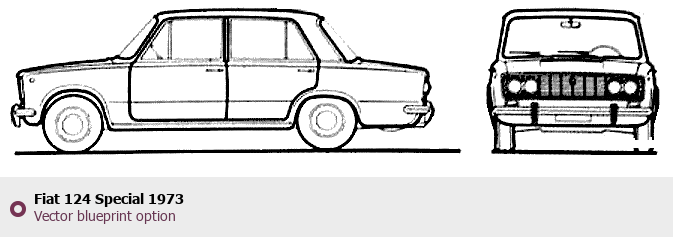 Raster blueprint of the 1973 Fiat 124 Special Tag. This free downloadable image can be used for graphic projects, digital design, and 3D modeling. The file provides accurate exterior proportions of the vehicle. Model year: 1973. Body type: Tag.