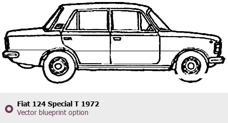 Raster blueprint of the 1972 Fiat 124 Special T Tag. This free downloadable image can be used for graphic projects, digital design, and 3D modeling. The file provides accurate exterior proportions of the vehicle. Model year: 1972. Body type: Tag.