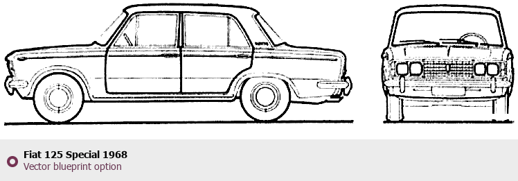Raster blueprint of the 1968 Fiat 125 Special Tag. This free downloadable image can be used for graphic projects, digital design, and 3D modeling. The file provides accurate exterior proportions of the vehicle. Model year: 1968. Body type: Tag.