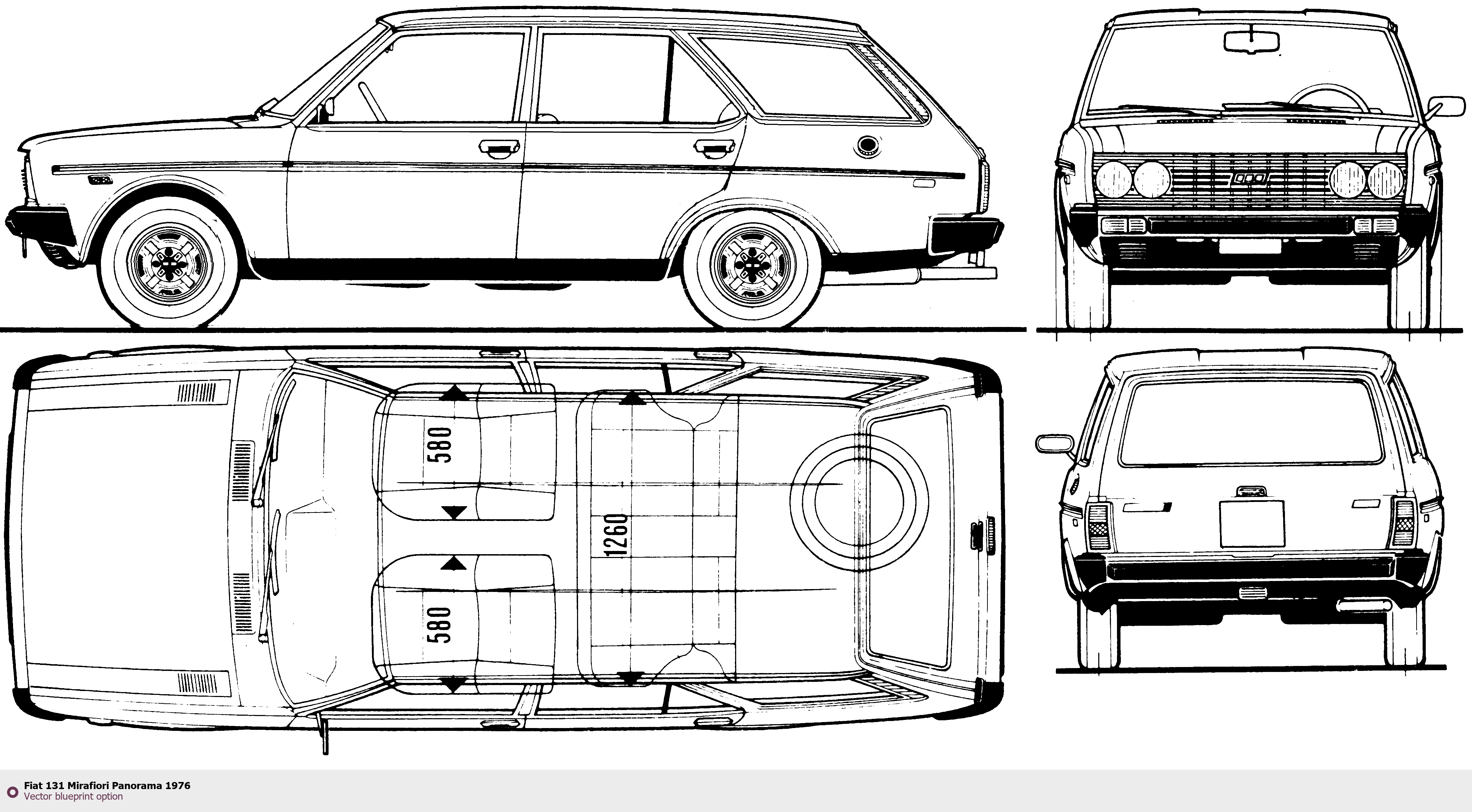 Raster blueprint of the 1976 Fiat 131 Mirafiori Panorama Tag. This free downloadable image can be used for graphic projects, digital design, and 3D modeling. The file provides accurate exterior proportions of the vehicle. Model year: 1976. Body type: Tag.