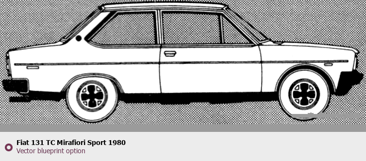 Raster blueprint of the 1980 Fiat 131 TC Mirafiori Sport Tag. This free downloadable image can be used for graphic projects, digital design, and 3D modeling. The file provides accurate exterior proportions of the vehicle. Model year: 1980. Body type: Tag.