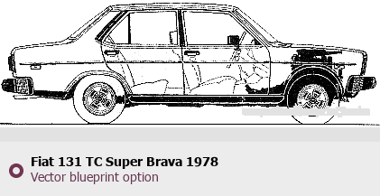 Raster blueprint of the 1978 Fiat 131 TC Super Brava Hatchback. This free downloadable image can be used for graphic projects, digital design, and 3D modeling. The file provides accurate exterior proportions of the vehicle. Model year: 1978. Body type: Hatchback.
