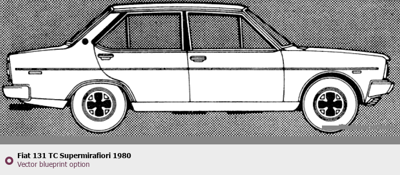 Raster blueprint of the 1980 Fiat 131 TC Supermirafiori Tag. This free downloadable image can be used for graphic projects, digital design, and 3D modeling. The file provides accurate exterior proportions of the vehicle. Model year: 1980. Body type: Tag.
