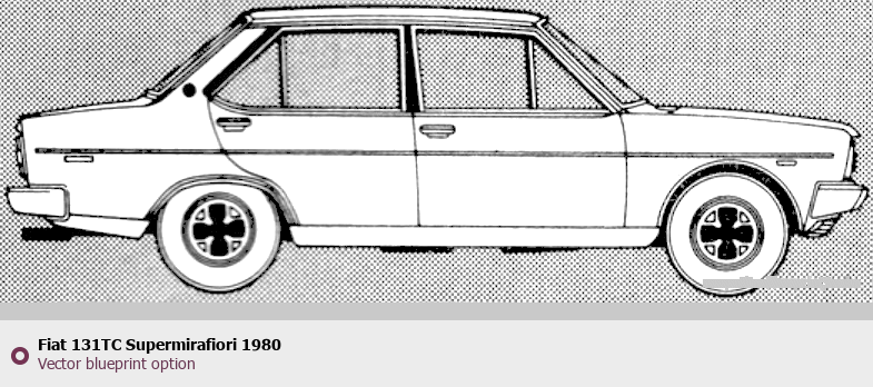 Raster blueprint of the 1980 Fiat 131TC Supermirafiori Tag. This free downloadable image can be used for graphic projects, digital design, and 3D modeling. The file provides accurate exterior proportions of the vehicle. Model year: 1980. Body type: Tag.