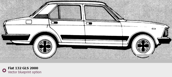 Raster blueprint of the 2000 Fiat 132 GLS Tag. This free downloadable image can be used for graphic projects, digital design, and 3D modeling. The file provides accurate exterior proportions of the vehicle. Model year: 2000. Body type: Tag.
