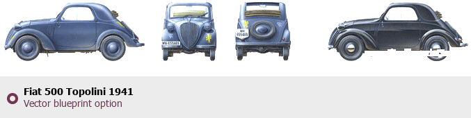 Raster blueprint of the 1941 Fiat 500 Topolini Tag. This free downloadable image can be used for graphic projects, digital design, and 3D modeling. The file provides accurate exterior proportions of the vehicle. Model year: 1941. Body type: Tag.