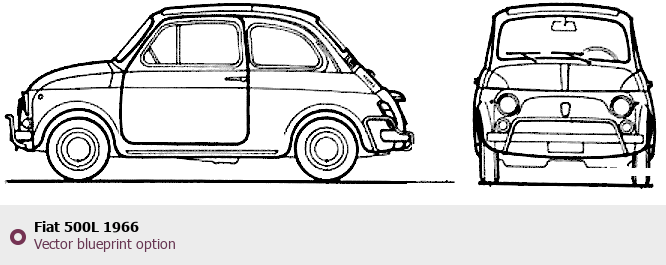 Raster blueprint of the 1966 Fiat 500L Tag. This free downloadable image can be used for graphic projects, digital design, and 3D modeling. The file provides accurate exterior proportions of the vehicle. Model year: 1966. Body type: Tag.