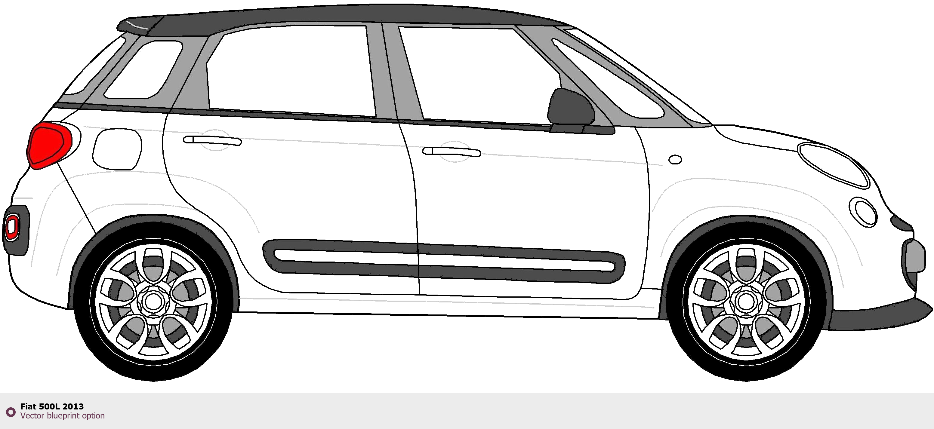 Raster blueprint of the 2013 Fiat 500L Tag. This free downloadable image can be used for graphic projects, digital design, and 3D modeling. The file provides accurate exterior proportions of the vehicle. Model year: 2013. Body type: Tag.