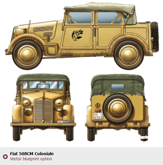 Raster blueprint of the Fiat 508CM Coloniale Tag. This free downloadable image can be used for graphic projects, digital design, and 3D modeling. The file provides accurate exterior proportions of the vehicle. Body type: Tag.