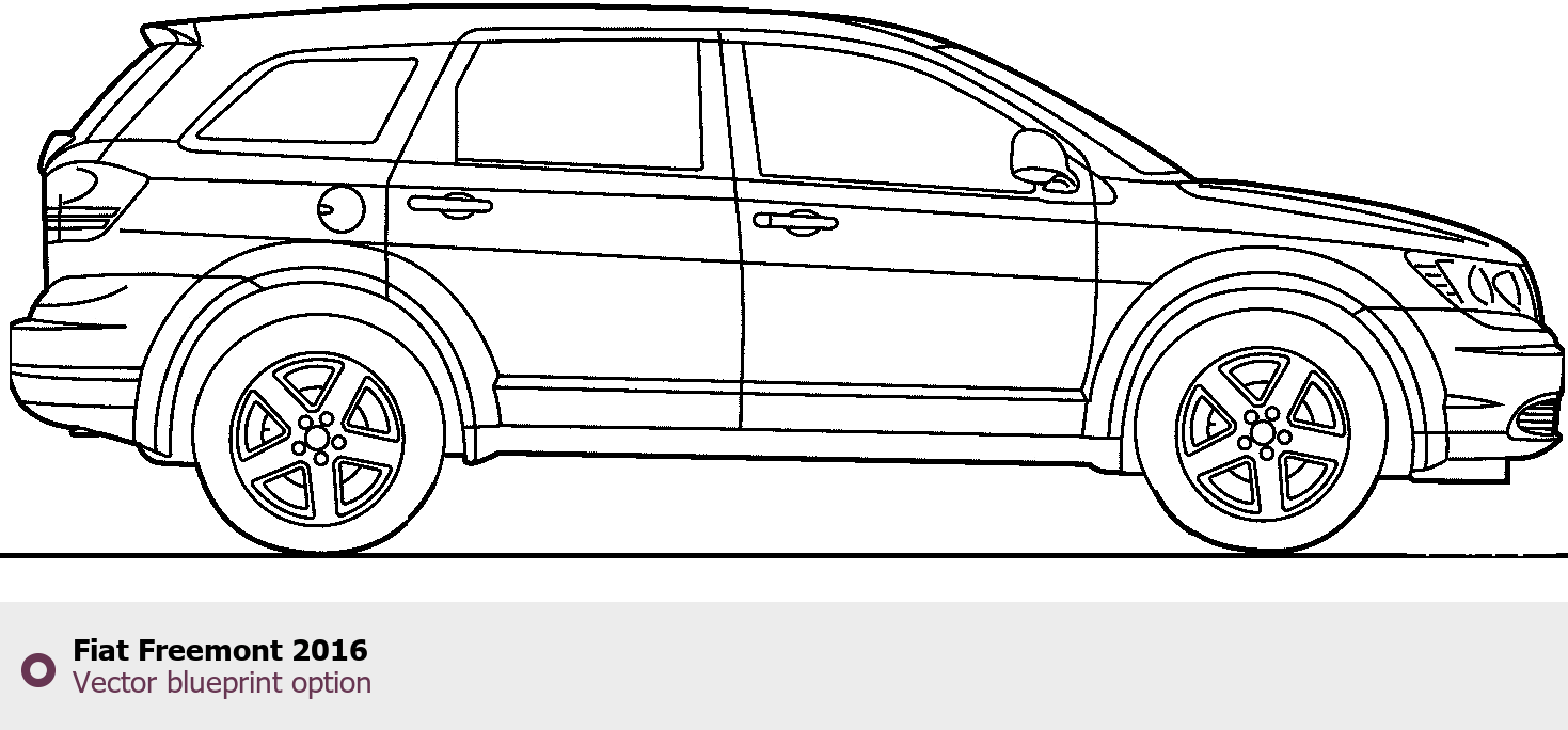 Raster blueprint of the 2016 Fiat Freemont SUV. This free downloadable image can be used for graphic projects, digital design, and 3D modeling. The file provides accurate exterior proportions of the vehicle. Model year: 2016. Body type: SUV.