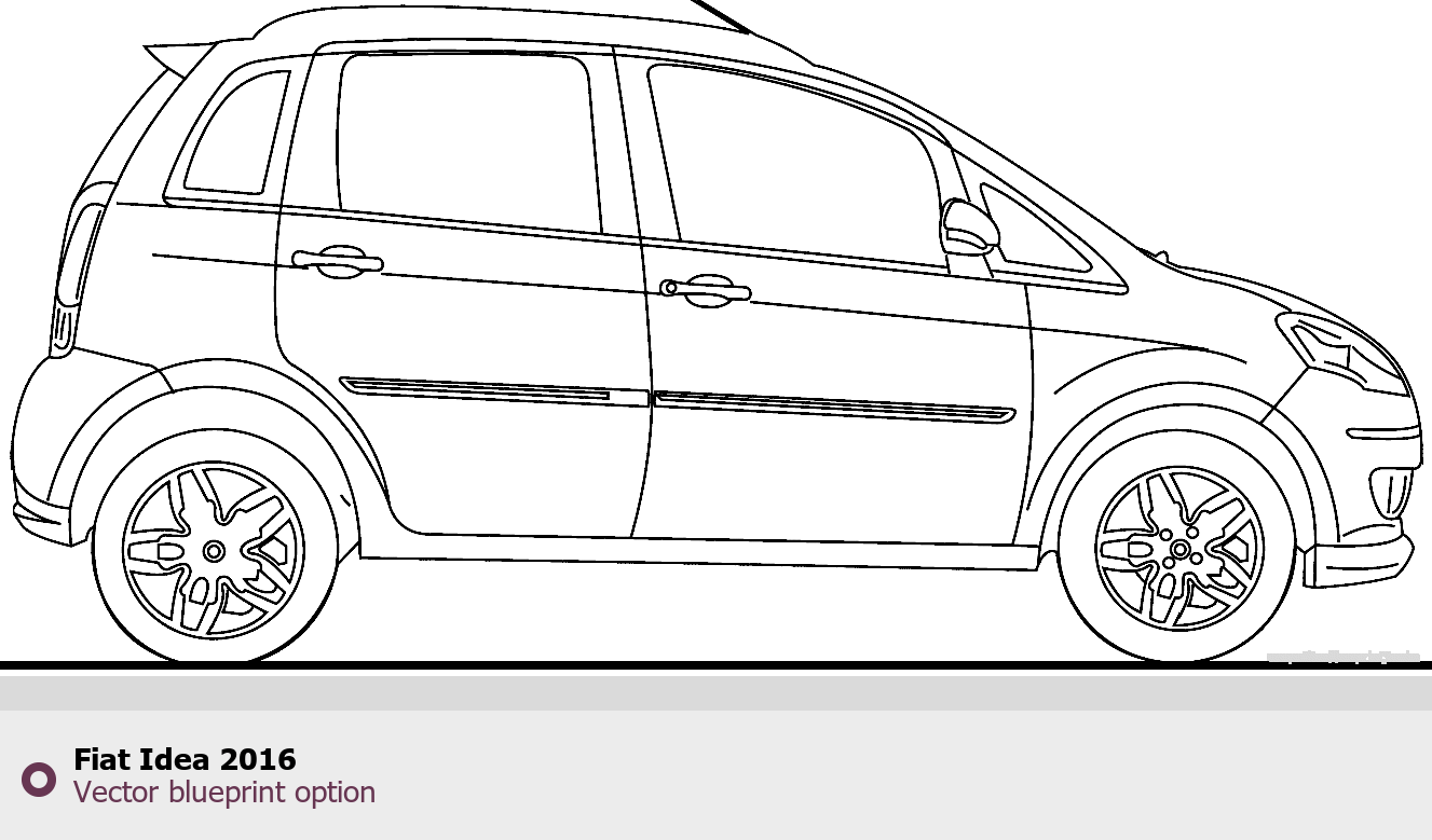 Raster blueprint of the 2016 Fiat Idea Microvan. This free downloadable image can be used for graphic projects, digital design, and 3D modeling. The file provides accurate exterior proportions of the vehicle. Model year: 2016. Body type: Microvan.