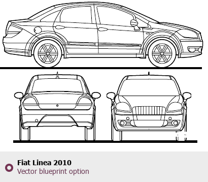 Raster blueprint of the 2010 Fiat Linea Sedan. This free downloadable image can be used for graphic projects, digital design, and 3D modeling. The file provides accurate exterior proportions of the vehicle. Model year: 2010. Body type: Sedan.