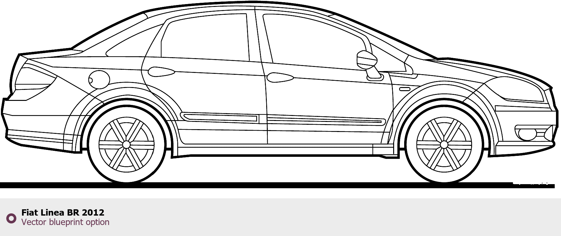 Raster blueprint of the 2012 Fiat Linea BR Sedan. This free downloadable image can be used for graphic projects, digital design, and 3D modeling. The file provides accurate exterior proportions of the vehicle. Model year: 2012. Body type: Sedan.