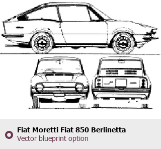 Raster blueprint of the Fiat Moretti Fiat 850 Berlinetta S4 Tag. This free downloadable image can be used for graphic projects, digital design, and 3D modeling. The file provides accurate exterior proportions of the vehicle. Body type: Tag.
