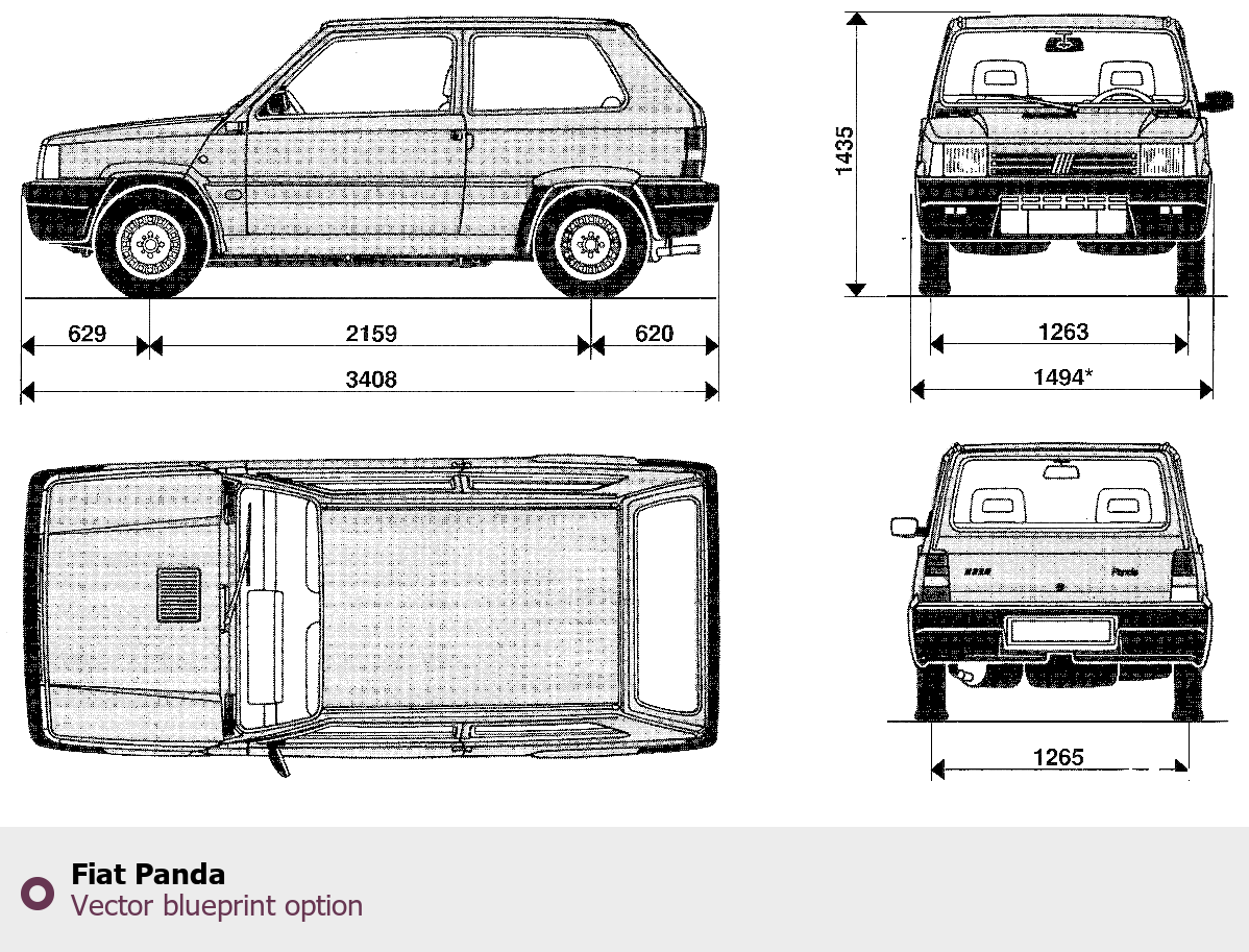 Raster blueprint of the Fiat Panda Tag. This free downloadable image can be used for graphic projects, digital design, and 3D modeling. The file provides accurate exterior proportions of the vehicle. Body type: Tag.