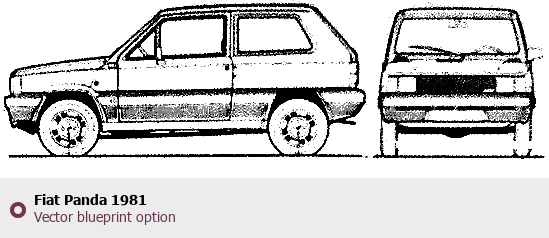 Raster blueprint of the 1981 Fiat Panda Tag. This free downloadable image can be used for graphic projects, digital design, and 3D modeling. The file provides accurate exterior proportions of the vehicle. Model year: 1981. Body type: Tag.