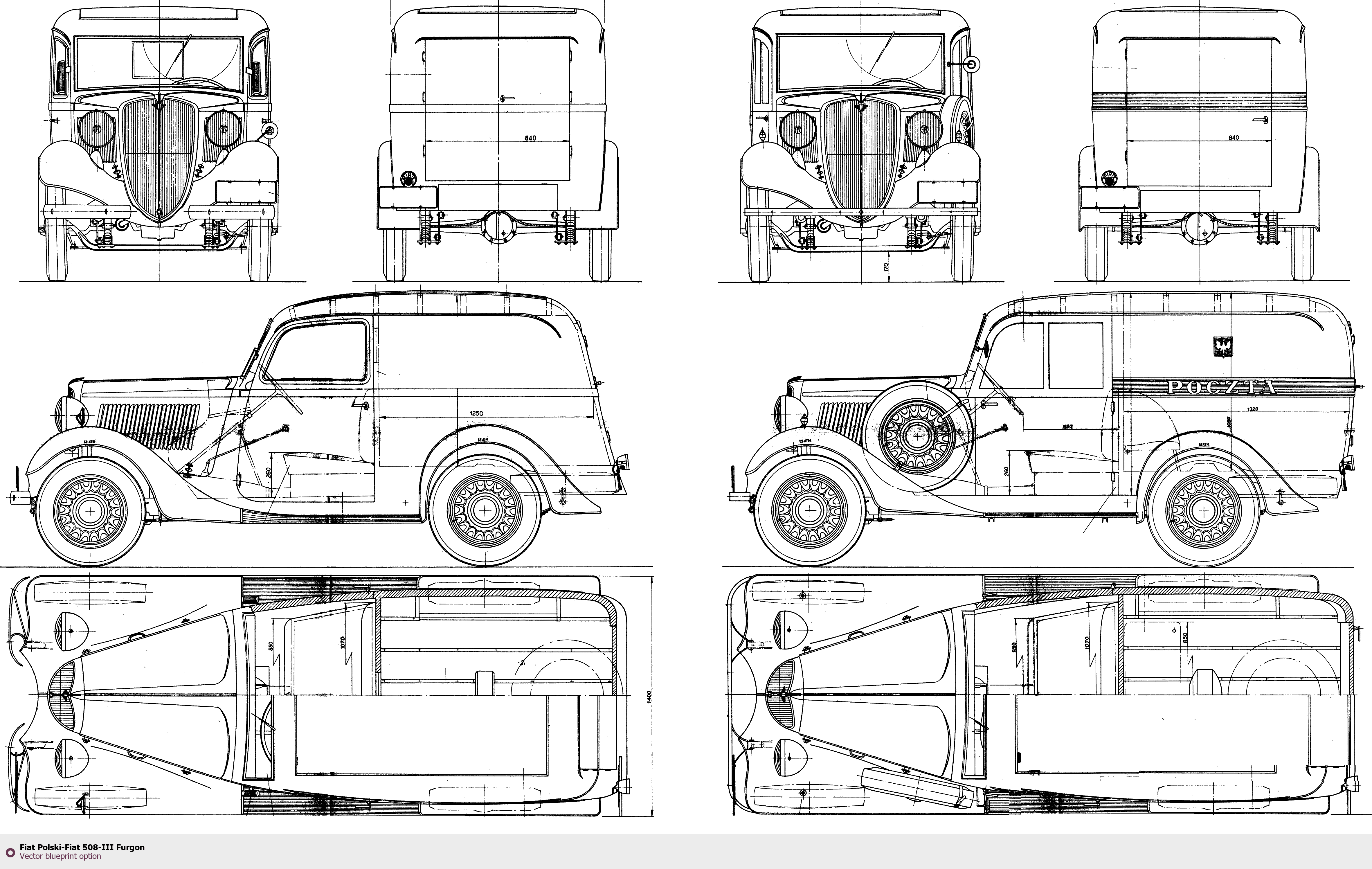 Raster blueprint of the Fiat Polski-Fiat 508-III Furgon Tag. This free downloadable image can be used for graphic projects, digital design, and 3D modeling. The file provides accurate exterior proportions of the vehicle. Body type: Tag.