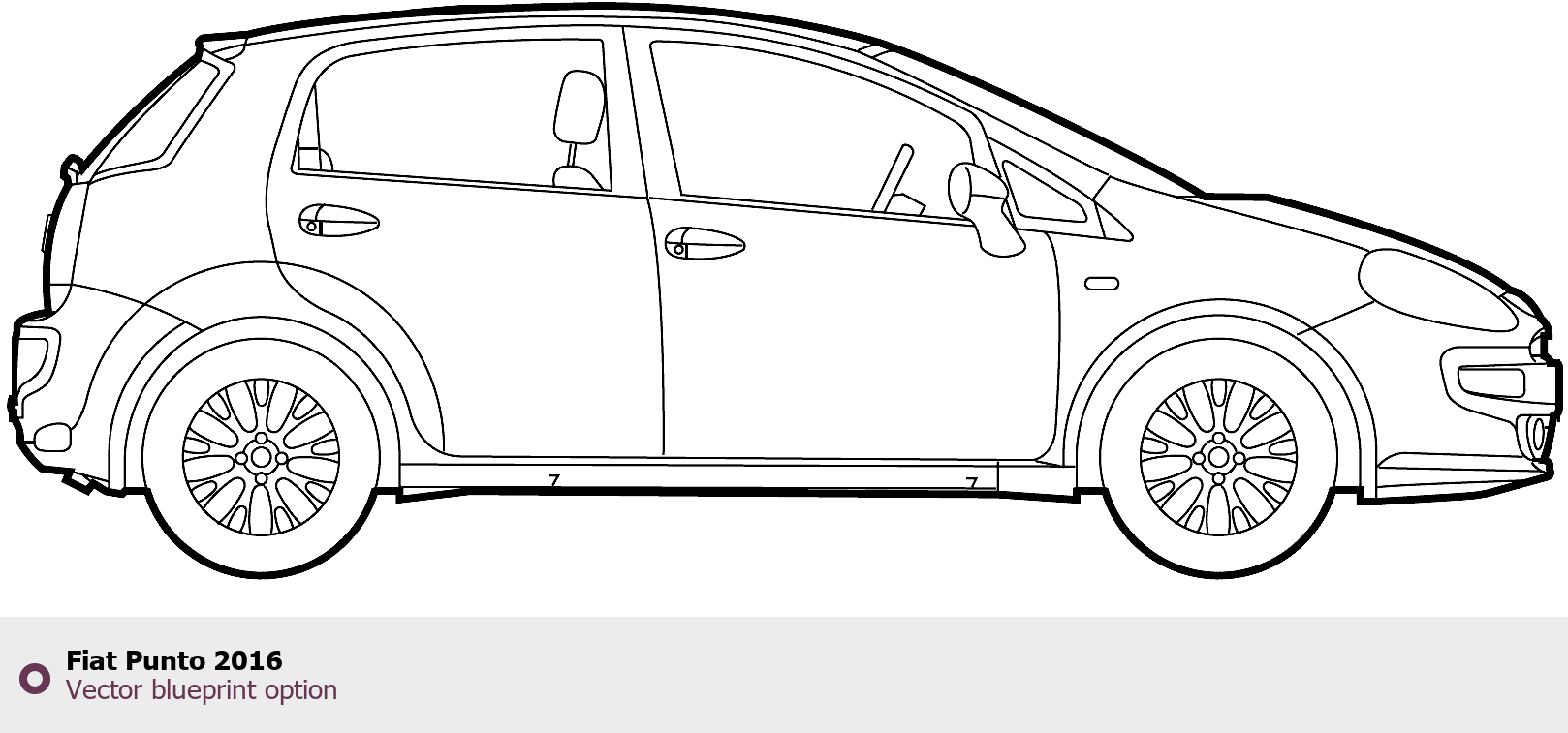 Raster blueprint of the 2016 Fiat Punto Tag. This free downloadable image can be used for graphic projects, digital design, and 3D modeling. The file provides accurate exterior proportions of the vehicle. Model year: 2016. Body type: Tag.