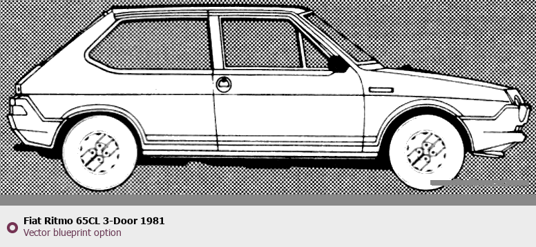 Raster blueprint of the 1981 Fiat Ritmo 65CL 3-Door Tag. This free downloadable image can be used for graphic projects, digital design, and 3D modeling. The file provides accurate exterior proportions of the vehicle. Model year: 1981. Body type: Tag.