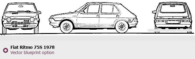 Raster blueprint of the 1978 Fiat Ritmo 75S Tag. This free downloadable image can be used for graphic projects, digital design, and 3D modeling. The file provides accurate exterior proportions of the vehicle. Model year: 1978. Body type: Tag.