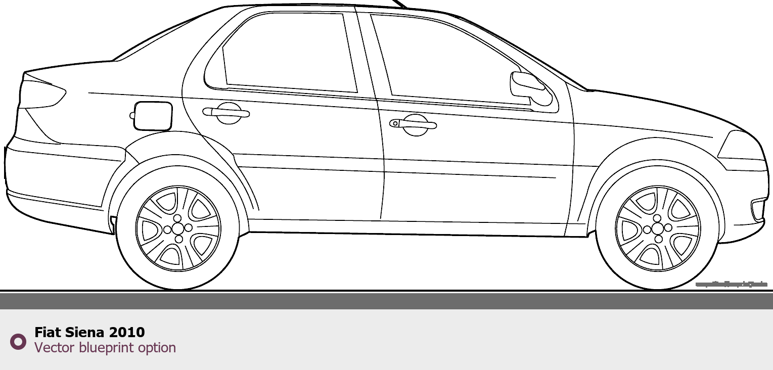 Raster blueprint of the 2010 Fiat Siena Sedan. This free downloadable image can be used for graphic projects, digital design, and 3D modeling. The file provides accurate exterior proportions of the vehicle. Model year: 2010. Body type: Sedan.
