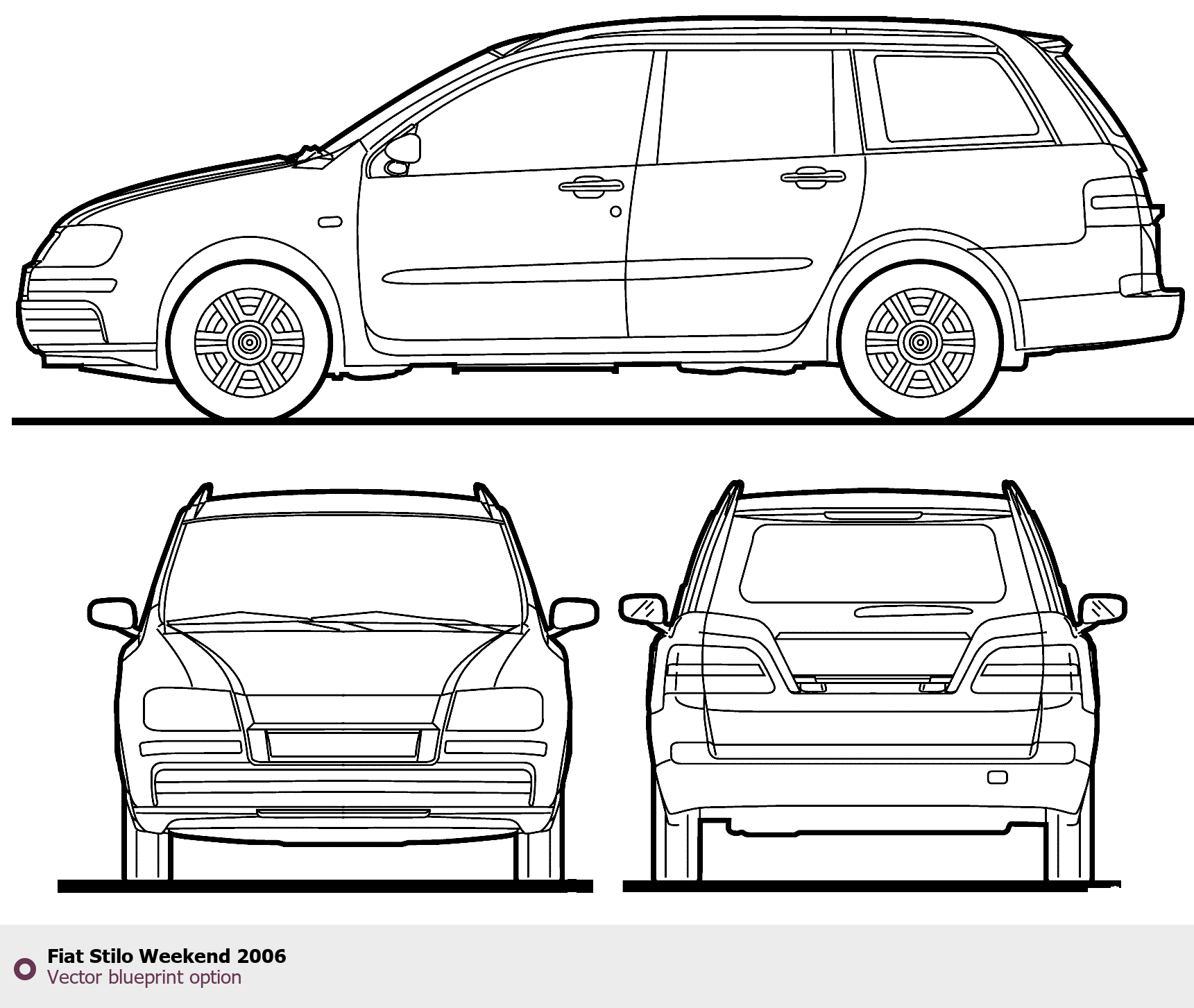 Raster blueprint of the 2006 Fiat Stilo Weekend Tag. This free downloadable image can be used for graphic projects, digital design, and 3D modeling. The file provides accurate exterior proportions of the vehicle. Model year: 2006. Body type: Tag.