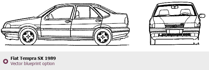 Raster blueprint of the 1989 Fiat Tempra SX Tag. This free downloadable image can be used for graphic projects, digital design, and 3D modeling. The file provides accurate exterior proportions of the vehicle. Model year: 1989. Body type: Tag.