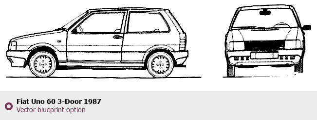 Raster blueprint of the 1987 Fiat Uno 60 3-Door Hatchback. This free downloadable image can be used for graphic projects, digital design, and 3D modeling. The file provides accurate exterior proportions of the vehicle. Model year: 1987. Body type: Hatchback.