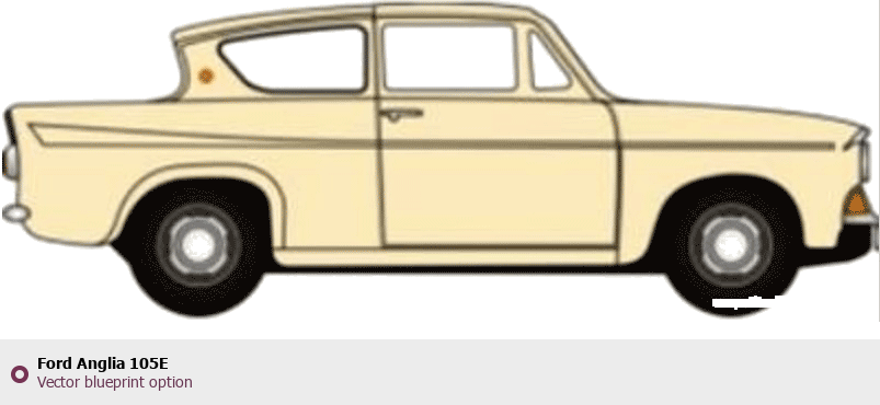 Raster blueprint of the Ford Anglia 105E Tag. This free downloadable image can be used for graphic projects, digital design, and 3D modeling. The file provides accurate exterior proportions of the vehicle. Body type: Tag.