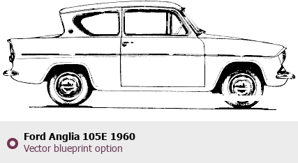 Raster blueprint of the 1960 Ford Anglia 105E Tag. This free downloadable image can be used for graphic projects, digital design, and 3D modeling. The file provides accurate exterior proportions of the vehicle. Model year: 1960. Body type: Tag.