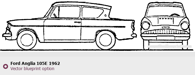Raster blueprint of the 1962 Ford Anglia 105E Tag. This free downloadable image can be used for graphic projects, digital design, and 3D modeling. The file provides accurate exterior proportions of the vehicle. Model year: 1962. Body type: Tag.
