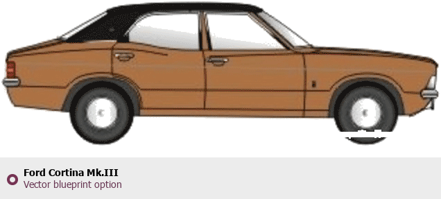 Raster blueprint of the Ford Cortina Mk.III Tag. This free downloadable image can be used for graphic projects, digital design, and 3D modeling. The file provides accurate exterior proportions of the vehicle. Body type: Tag.