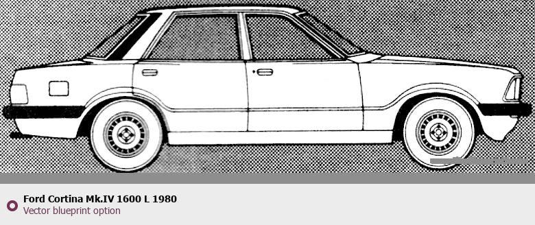 Raster blueprint of the 1980 Ford Cortina Mk.IV 1600 L Tag. This free downloadable image can be used for graphic projects, digital design, and 3D modeling. The file provides accurate exterior proportions of the vehicle. Model year: 1980. Body type: Tag.