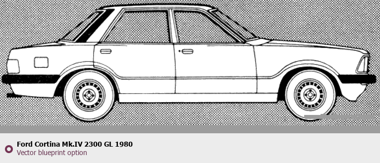 Raster blueprint of the 1980 Ford Cortina Mk.IV 2300 GL Tag. This free downloadable image can be used for graphic projects, digital design, and 3D modeling. The file provides accurate exterior proportions of the vehicle. Model year: 1980. Body type: Tag.