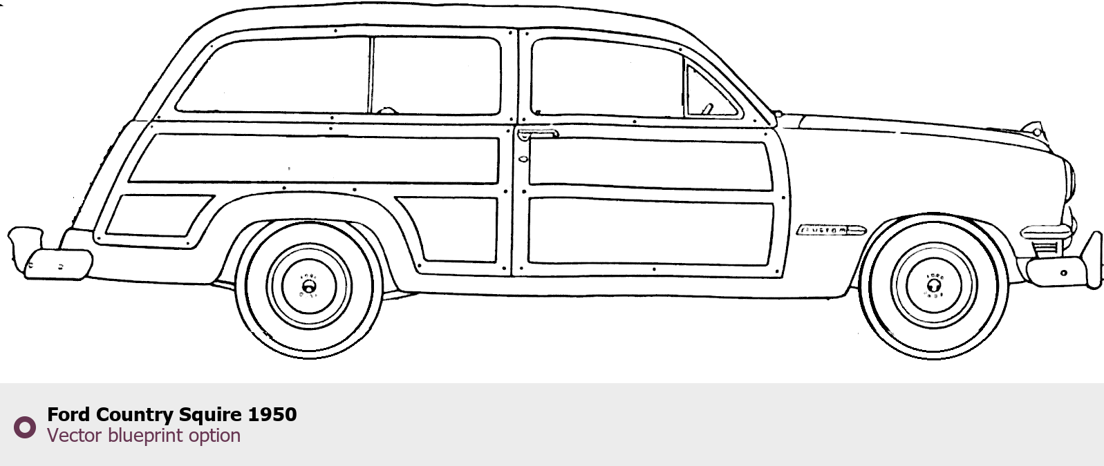 Raster blueprint of the 1950 Ford Country Squire Tag. This free downloadable image can be used for graphic projects, digital design, and 3D modeling. The file provides accurate exterior proportions of the vehicle. Model year: 1950. Body type: Tag.