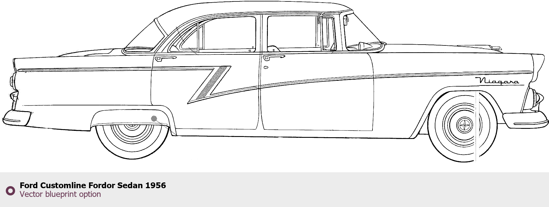 Raster blueprint of the 1956 Ford Customline Fordor Sedan Sedan. This free downloadable image can be used for graphic projects, digital design, and 3D modeling. The file provides accurate exterior proportions of the vehicle. Model year: 1956. Body type: Sedan.