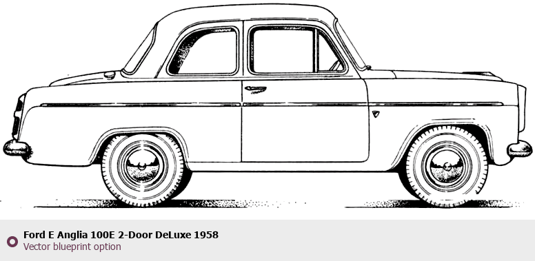 Raster blueprint of the 1958 Ford E Anglia 100E 2-Door DeLuxe Tag. This free downloadable image can be used for graphic projects, digital design, and 3D modeling. The file provides accurate exterior proportions of the vehicle. Model year: 1958. Body type: Tag.