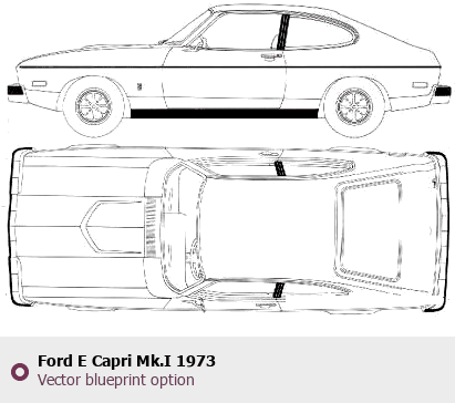 Raster blueprint of the 1973 Ford E Capri Mk.I Tag. This free downloadable image can be used for graphic projects, digital design, and 3D modeling. The file provides accurate exterior proportions of the vehicle. Model year: 1973. Body type: Tag.